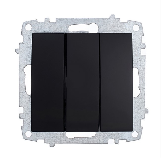 Τριπλός διακόπτης ELBI Zena Platin μαύρος, χωρίς πλαίσιο, 10A 250V, για κρυφή εγκατάσταση, συμβατός με όλα τα πλαίσια Zena Platin.