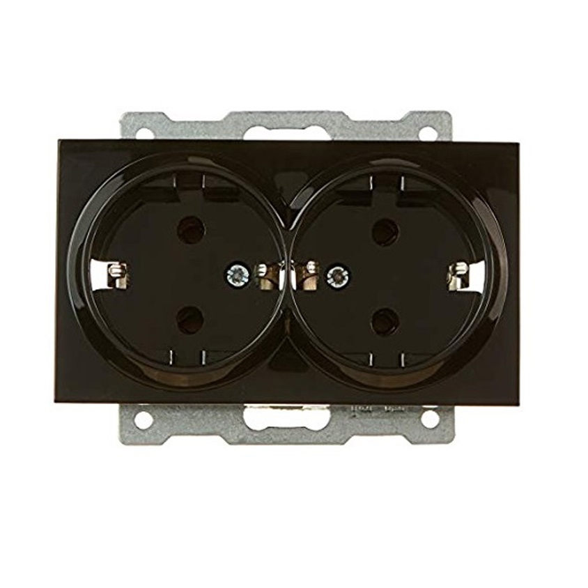 Διπλή πρίζα σούκο μοναδα μηχανισμου και καλυμμα χωρίς πλαίσιο μαύρο 2x2P+E 16A Zena Platin ELBI.