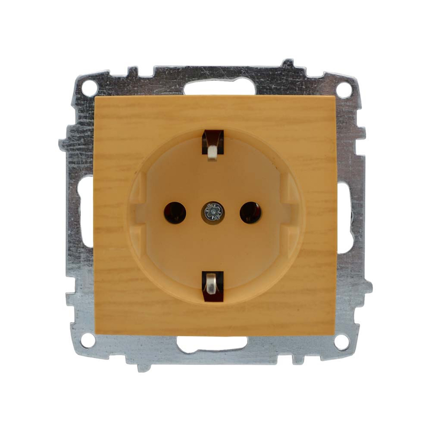 Πρίζα σούκο 16A χωρίς πλαίσιο σε χρώμα ελαφρύ ξύλο ELBI, για κρυφή εγκατάσταση σε μονή κονσόλα, υμβατή με χρωματιστά πλαίσιο Zena και Vega.